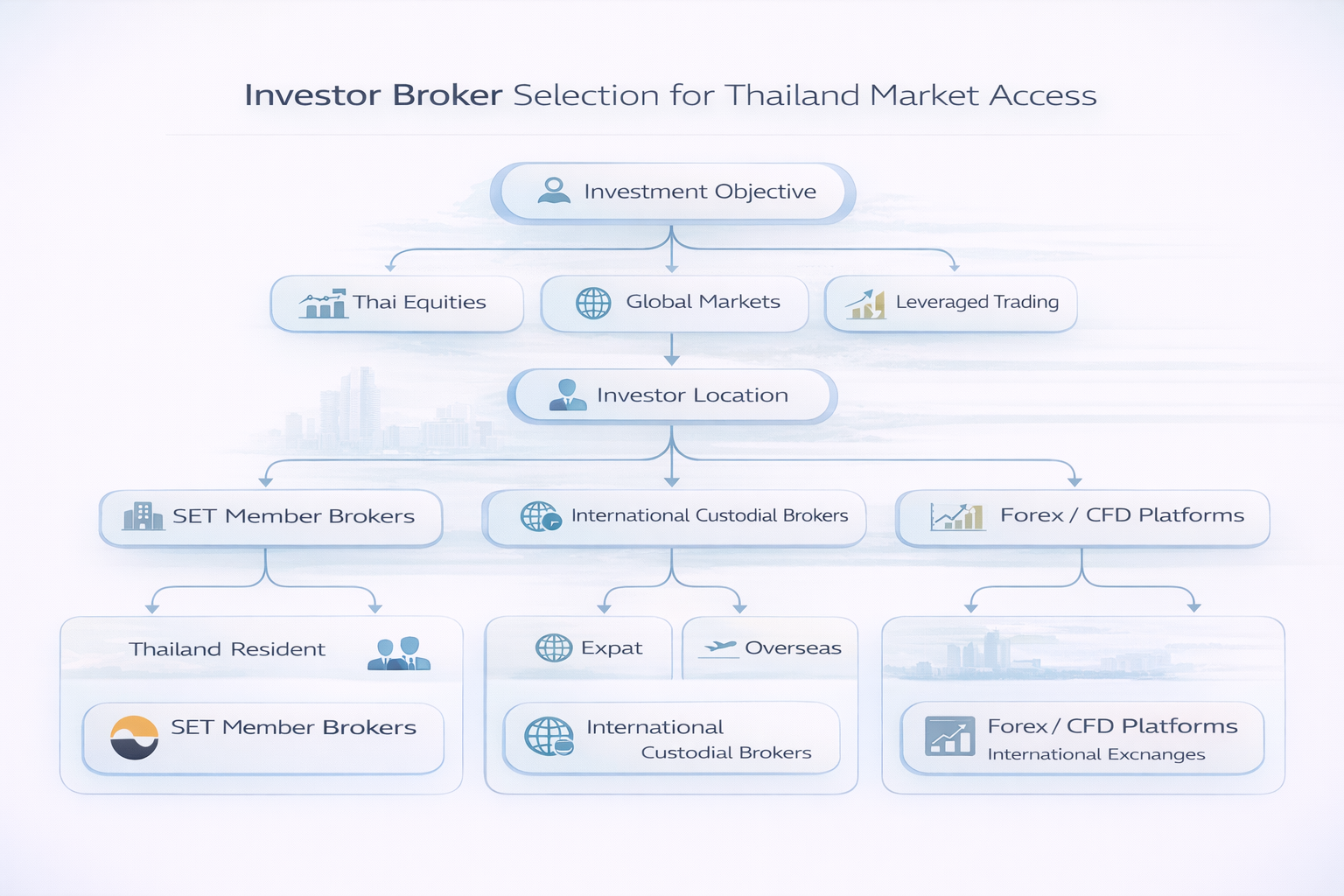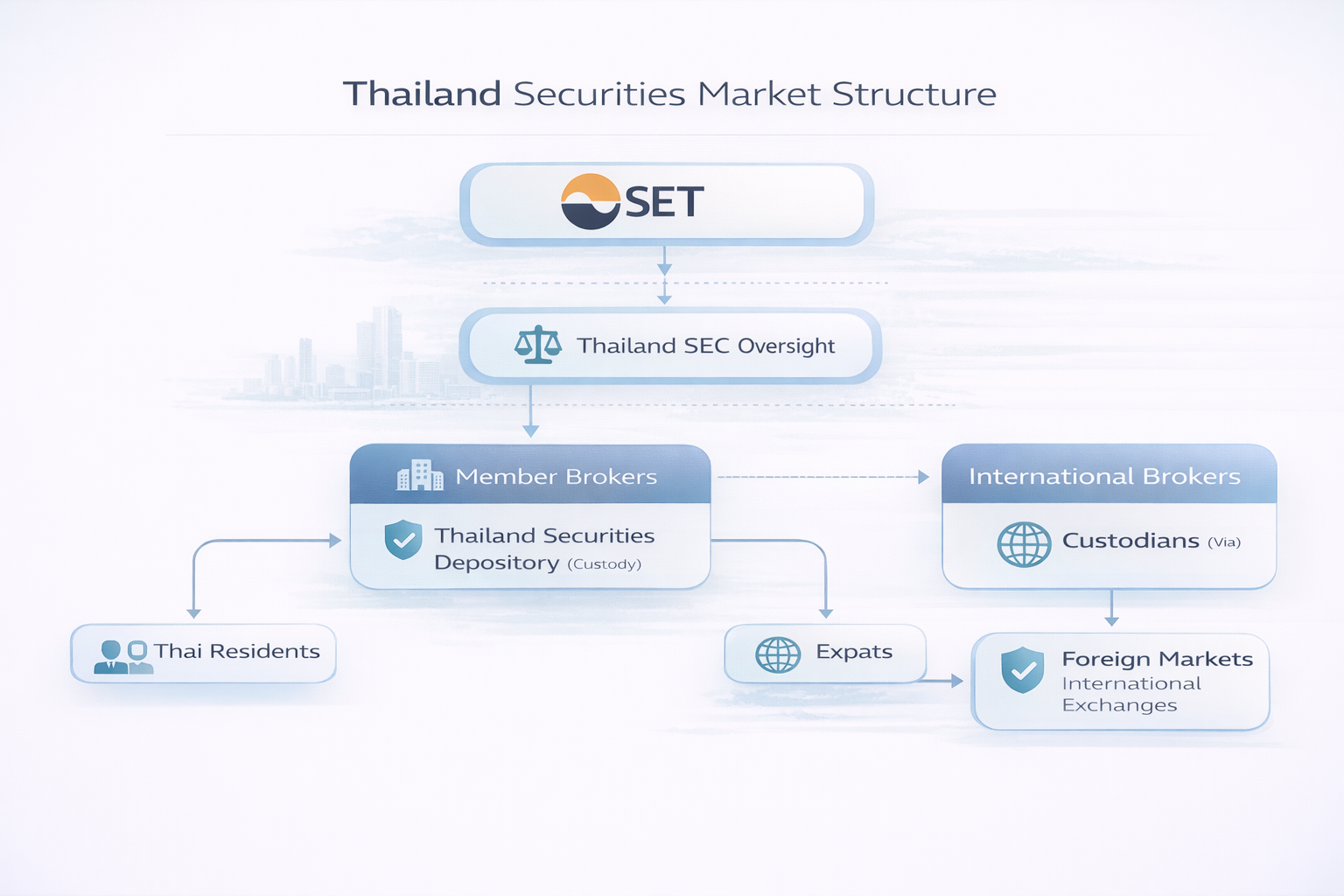 - International brokers access SET via Thai sub‑brokers or global custodians with Thai sub‑custody.